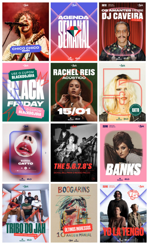 Evolution of the visual identity for Cine Joia, an iconic concert hall in Liberdade, São Paulo.